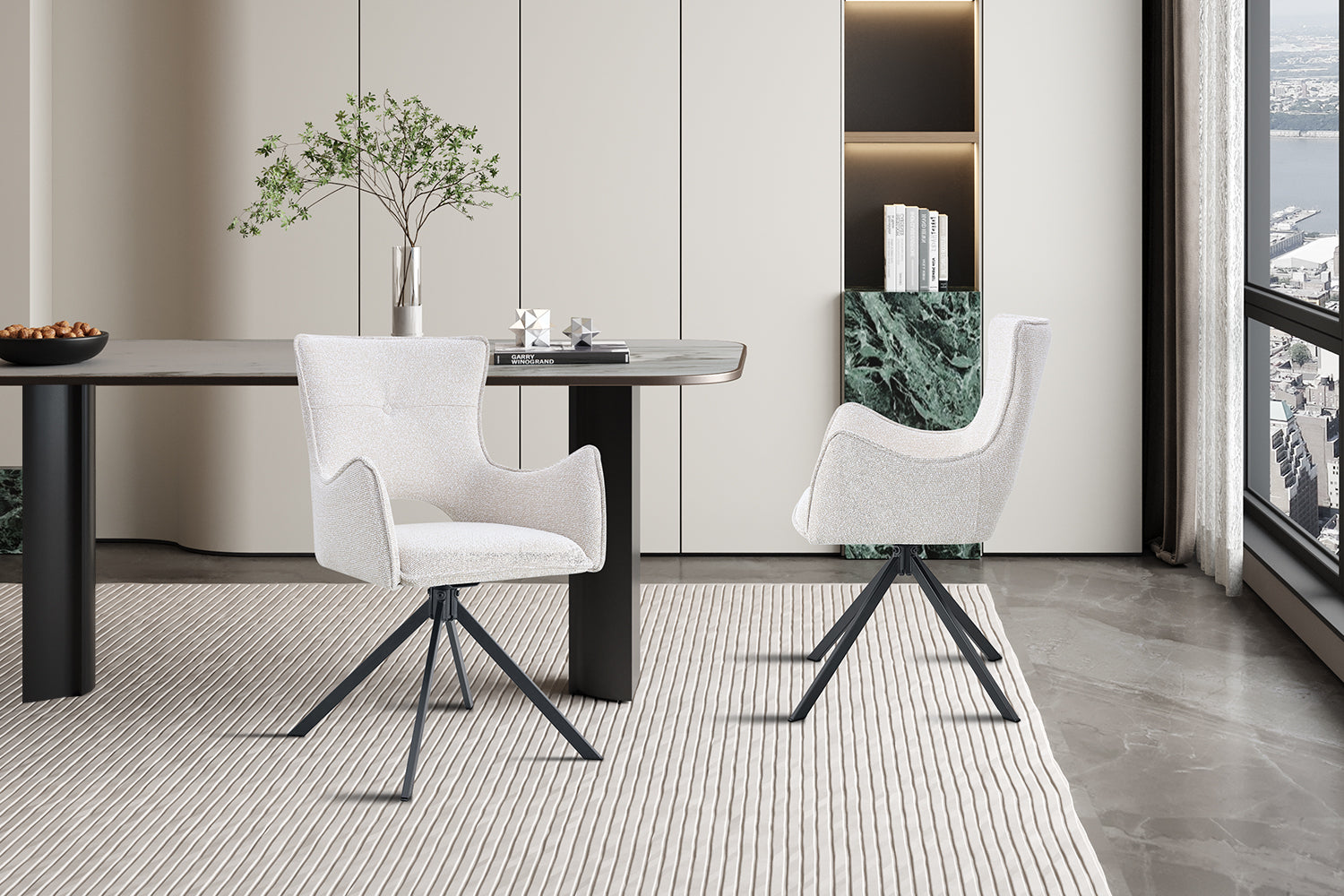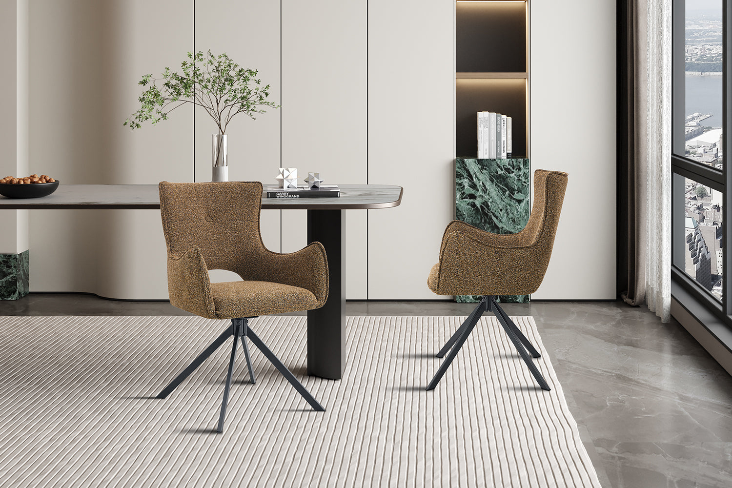 Le revêtement est de la marque OTE, un tissu de haute qualité fabriqué à partir de polyester recyclé (bouteilles PET). Cela rend la chaise un choix durable et respectueux de l’environnement. Le tissu est certifié OEKO-TEX®, exempt de substances nocives et conforme à la réglementation européenne REACH. De plus, le fabricant est enregistré auprès de la BSCI, ce qui garantit de bonnes conditions de travail, des salaires équitables, la sécurité et la protection de l’environnement. Le piètement est doté de pieds en métal avec un revêtement en poudre noir. Les avantages du revêtement en poudre sont la résistance à l’usure, la résistance à la rouille et la facilité d’entretien.