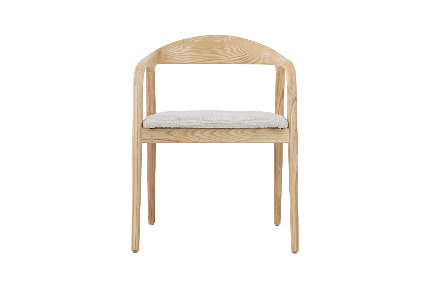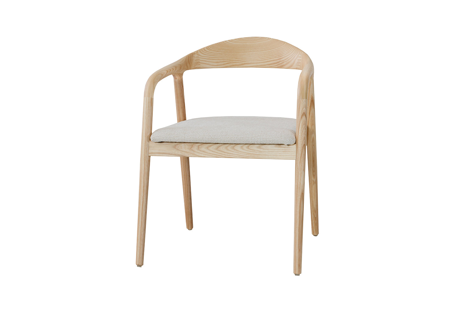 La chaise est constituée d’une structure et de pieds en frêne massif. Le frêne est un bois dur à feuilles caduques, doté d’une grande ténacité et d’une bonne élasticité, ce qui contribue à la solidité structurelle et à la durabilité dans le temps. Ce matériau présente un veinage marqué et est apprécié pour sa résistance mécanique et sa stabilité dimensionnelle. L’assise comporte un noyau en MDF, un panneau de fibres de bois pressé sous haute pression et température, formant ainsi une surface homogène et stable.