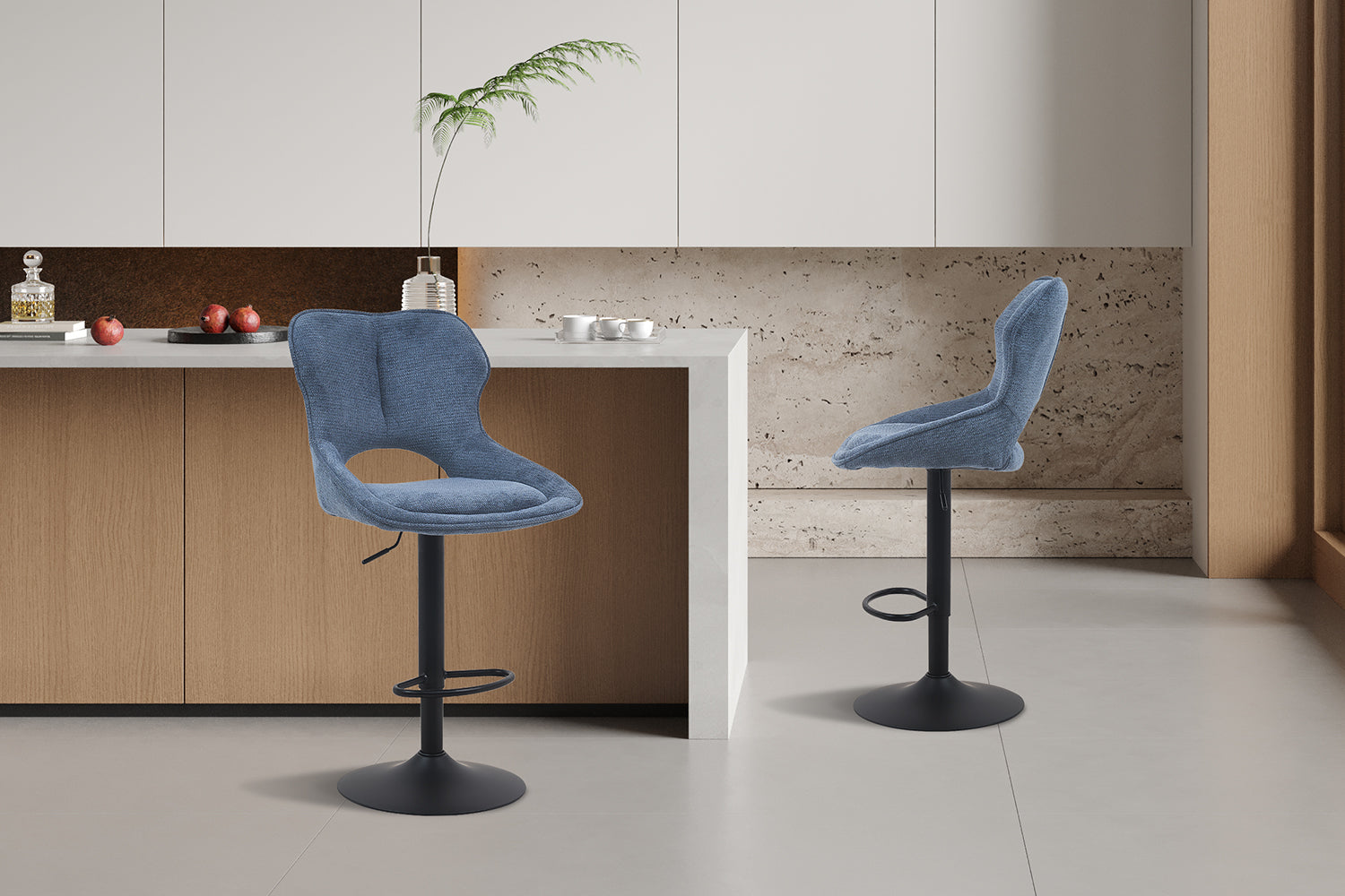 Le revêtement provient de la marque OTE, un tissu de haute qualité fabriqué à partir de polyester recyclé (bouteilles PET). Cela fait de cette chaise un choix durable et respectueux de l’environnement. Le tissu est certifié OEKO-TEX®, exempt de substances nocives et conforme à la réglementation européenne REACH. De plus, le fabricant est enregistré BSCI, garantissant de bonnes conditions de travail, des salaires équitables, la sécurité et la protection de l’environnement. Le piètement est constitué d’un pied en métal solide avec vérin à gaz et repose-pieds intégré, assurant stabilité et confort supplémentaire. Les éléments métalliques sont revêtus d’une peinture en poudre noire, offrant une protection résistante à l’usure, à la corrosion et facile à entretenir. Grâce au vérin à gaz réglable en continu, la hauteur d’assise peut être facilement adaptée, permettant à la chaise de s’ajuster à différentes hauteurs de bar ou de table.