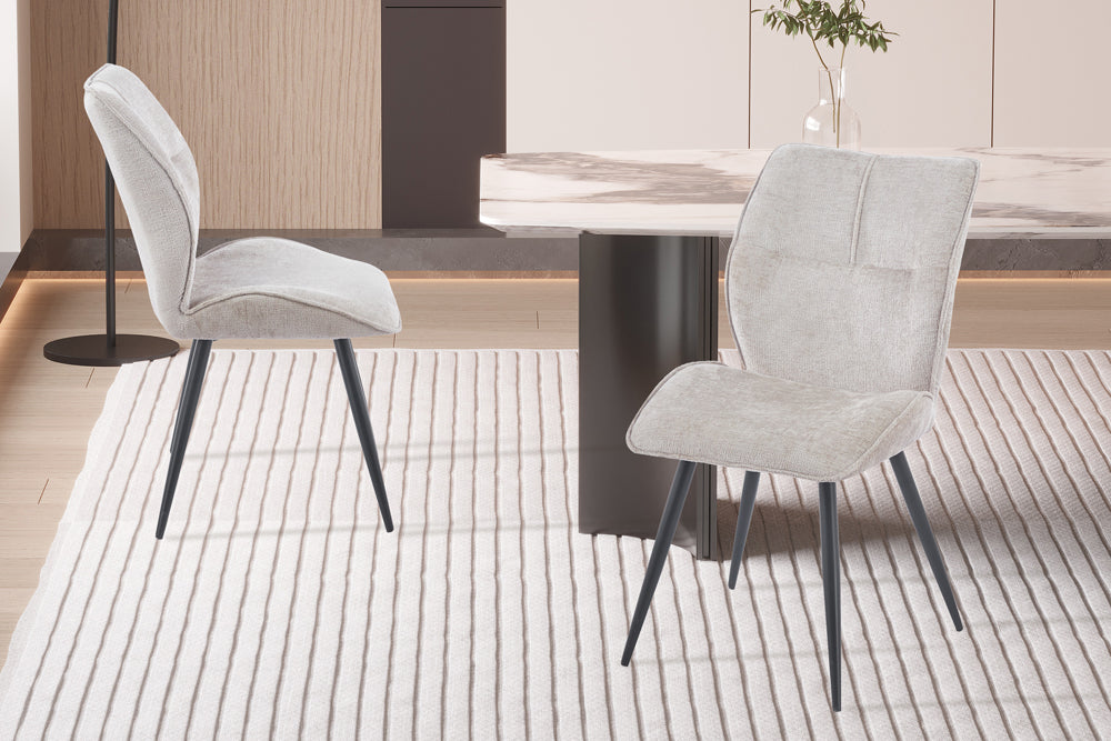 Les pieds en métal s’entretiennent facilement en les essuyant avec un chiffon sec ou légèrement humide. Le revêtement en tissu 100 % polyester conserve son bel aspect grâce à un passage régulier de l’aspirateur muni d’une brosse douce. Les taches doivent être traitées immédiatement en les tamponnant délicatement avec un chiffon légèrement humide ou un nettoyant textile doux ; évitez de frotter trop fort afin de ne pas endommager les fibres.