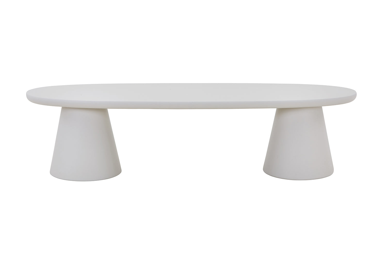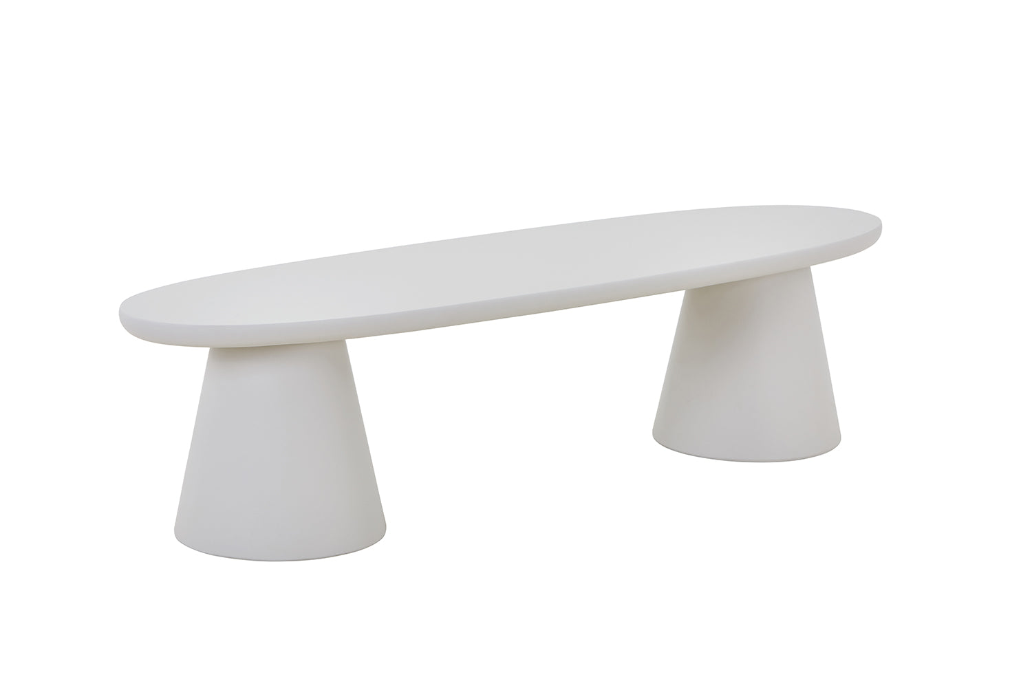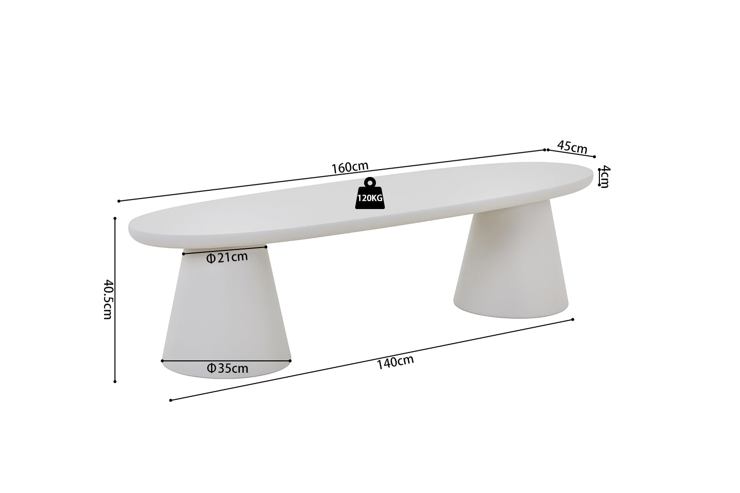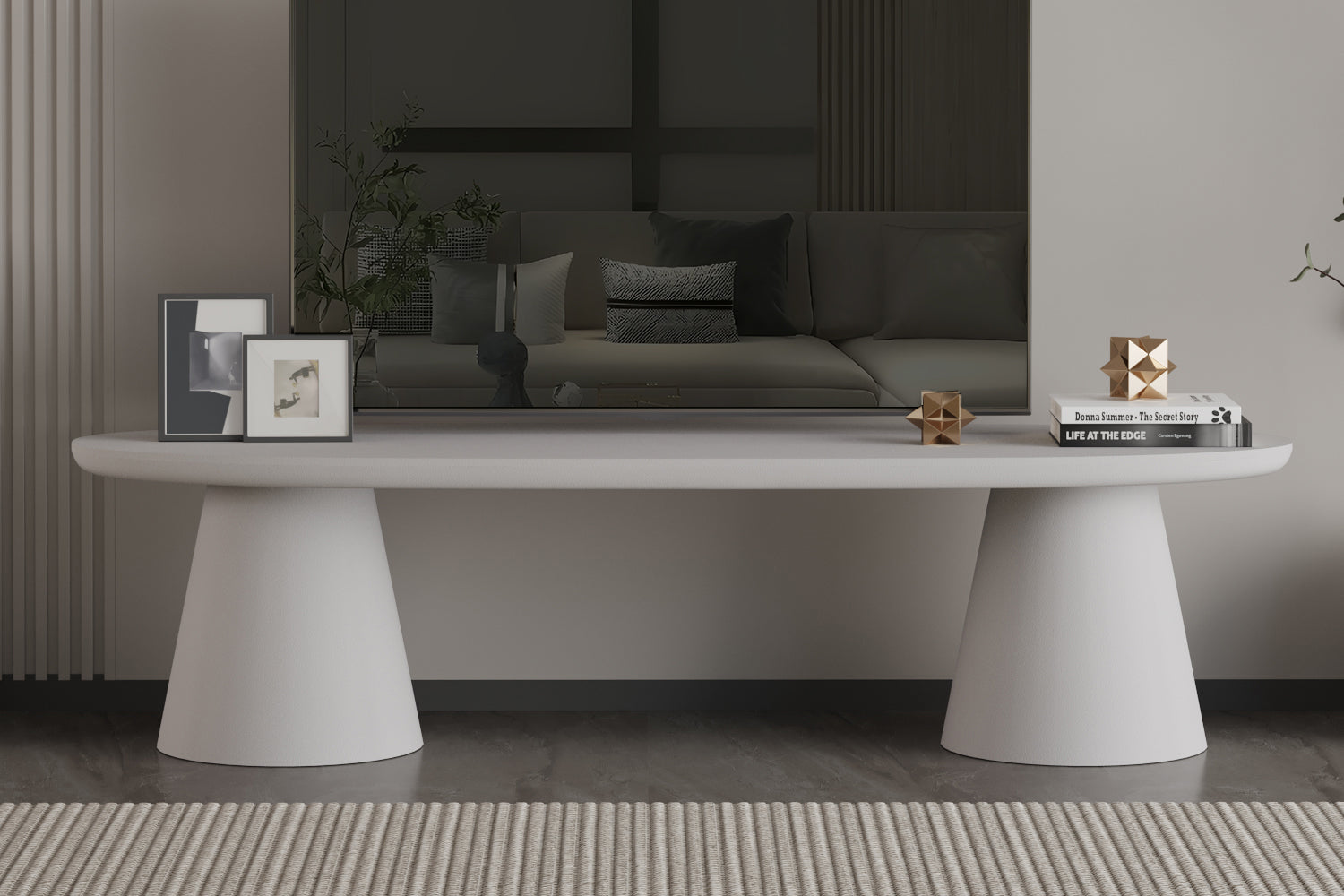 Le plateau et le piètement sont entièrement réalisés en MDF, recouverts d’une peinture à effet ciment pour une surface mate et homogène. La peinture ciment est une finition décorative et protectrice à base de ciment et de minéraux. Elle est appliquée comme couche de peinture sur le MDF, puis protégée par un vernis qui assure une résistance à l’humidité, aux taches, à l’usure et à la décoloration.