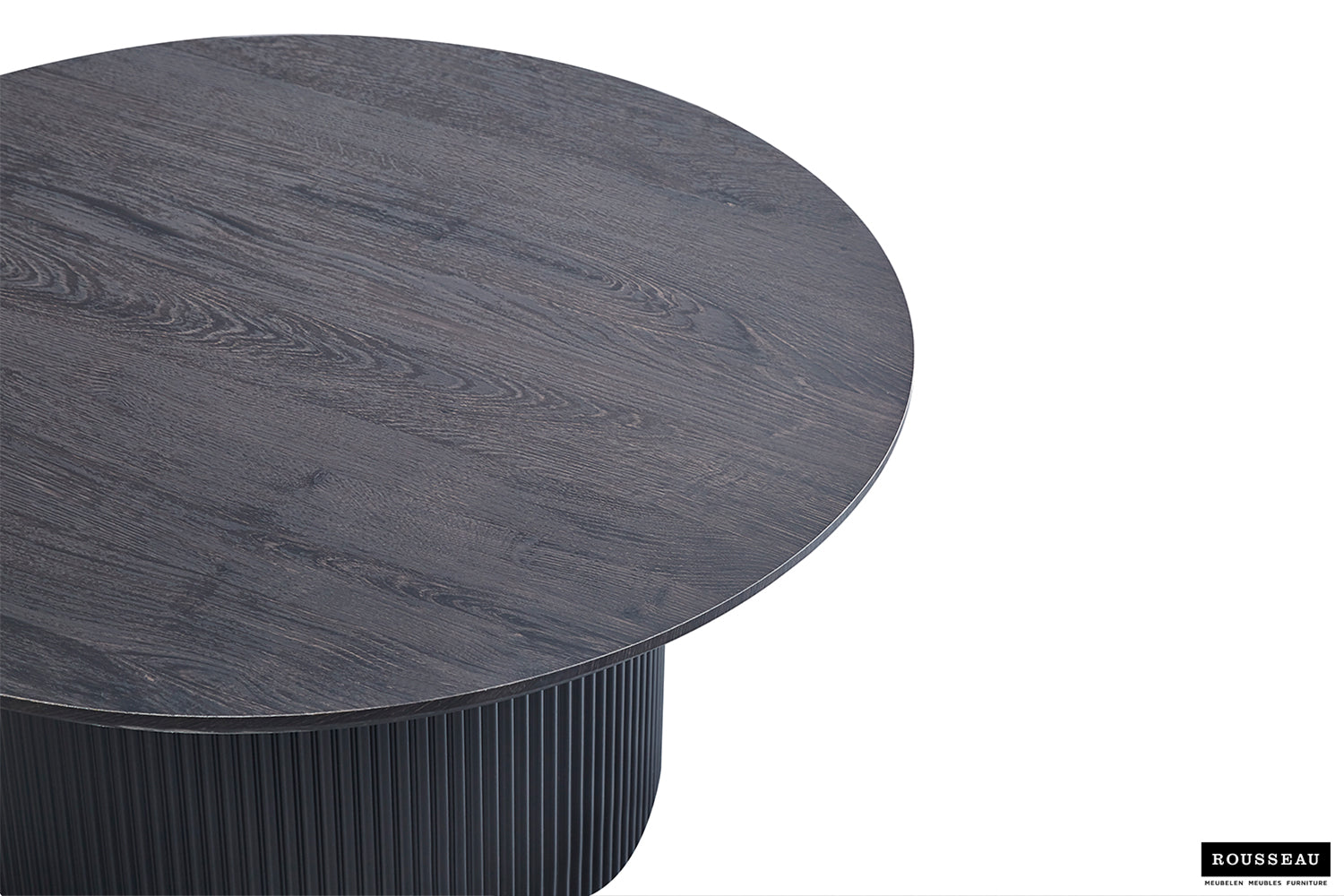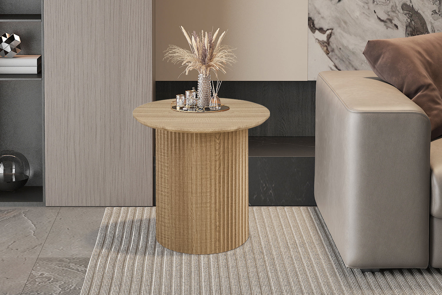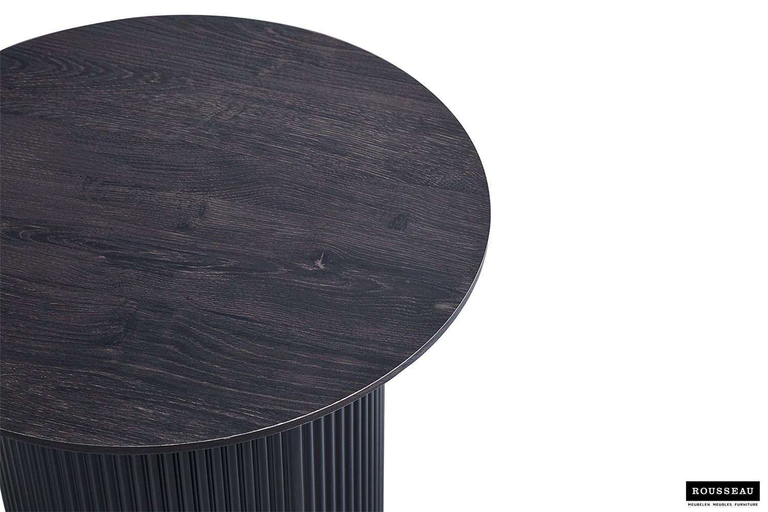 Le plateau et le pied de table sont en MDF et recouverts de papier décor. Il s’agit d’un papier imprimé, imprégné de résine et collé sous haute pression sur du MDF ou des panneaux de particules, pour obtenir une surface décorative. Grâce à cette finition, le meuble est facile d’entretien et abordable. Toutefois, comparé au bois massif, il reste plus sensible à l’humidité et moins résistant aux rayures et aux chocs.