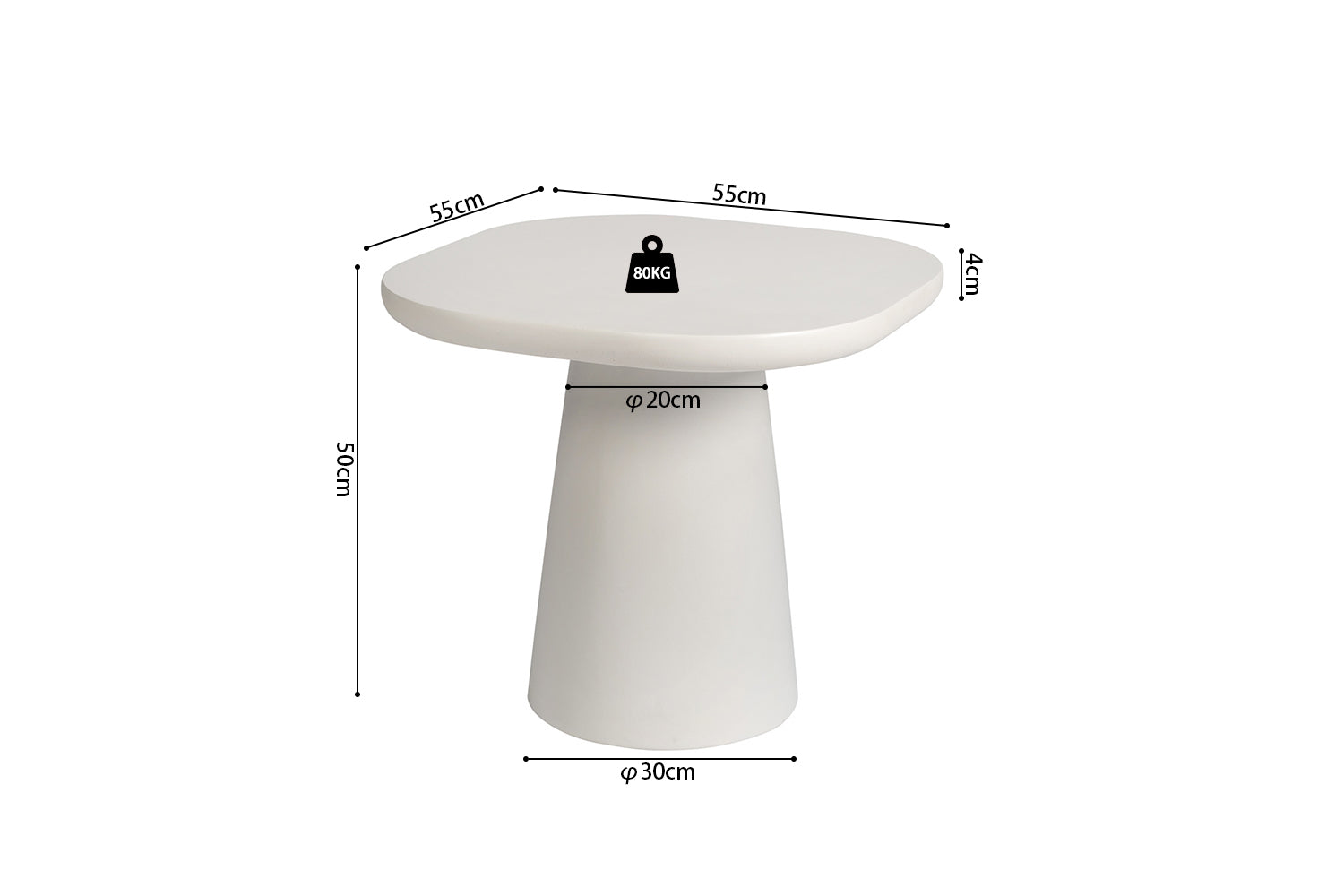 Le plateau et le piètement sont entièrement réalisés en MDF, recouverts d’une peinture à effet ciment pour une surface mate et homogène. La peinture ciment est une finition décorative et protectrice à base de ciment et de minéraux. Elle est appliquée comme couche de peinture sur le MDF, puis protégée par un vernis qui assure une résistance à l’humidité, aux taches, à l’usure et à la décoloration.